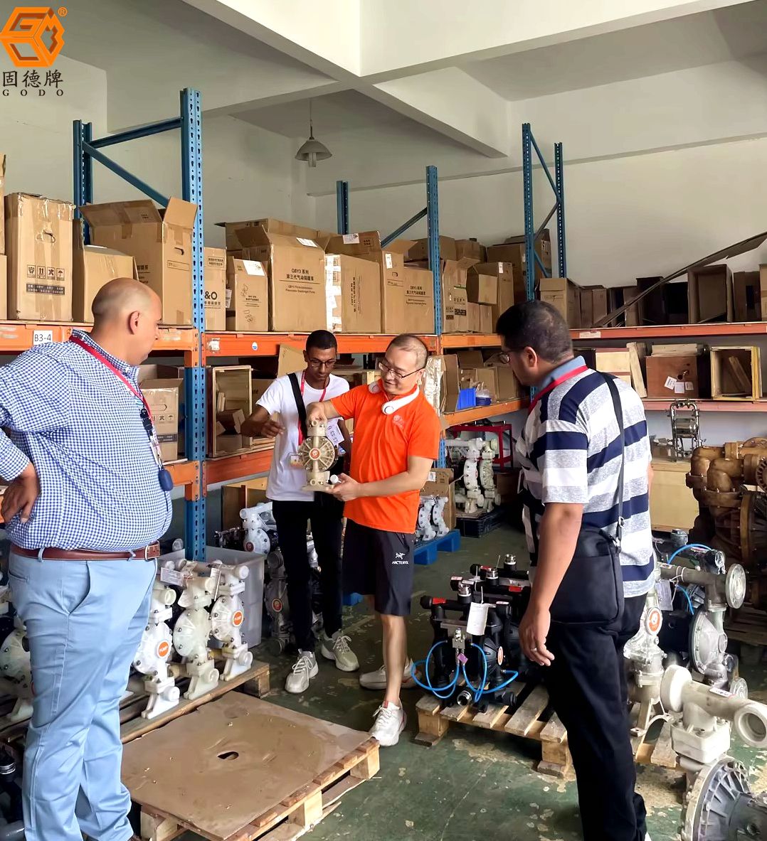 邊鋒國際事業(yè)部負(fù)責(zé)人代表公司帶領(lǐng)幾位中東客戶參觀了水泵博物館、工廠生產(chǎn)線、生產(chǎn)設(shè)備、倉儲(chǔ)設(shè)施等。向客戶展示了我們的主要產(chǎn)品線以及最新的技術(shù)成果,并為客戶詳細(xì)講解產(chǎn)品的性能特點(diǎn)、應(yīng)用工況。幫助客戶更好地了解并選擇更合適的隔膜泵產(chǎn)品。